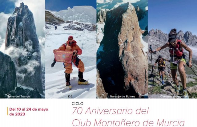 El Club Montañero de Murcia, con la colaboración de la Fundación Cajamurcia, ha organizado una nueva edición del ciclo conmemorativo 70 Aniversario del Club Montañero de Murcia, que se celebrará los días 10, 15, 16 y 24 de mayo, con entrada libre hasta completar aforo. Las tres primeras sesiones, que comienzan a las 19:30 horas, tendrán lugar en el Aula de Cultura de la Fundación Cajamurcia en Murcia (Gran Vía, 23), y la última se llevará a cabo en el Centro Cultural Las Claras (calle Santa Clara, 1), a partir de las 19 horas.