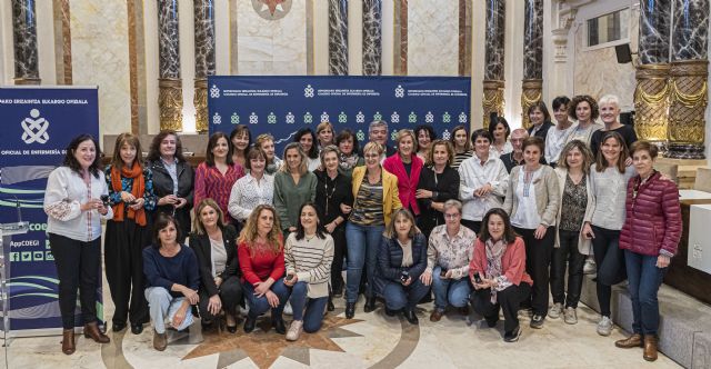 Durante el evento, que tuvo lugar en el Salón de Plenos del Ayuntamiento de San Sebastián con la asistencia de la concejala de Acción Social, Aitziber San Roman, y representantes del resto de colegios profesionales sanitarios de Gipuzkoa, la escritora Toti Martínez de Lezea protagonizó la charla "Curanderas, historia de una injusticia".