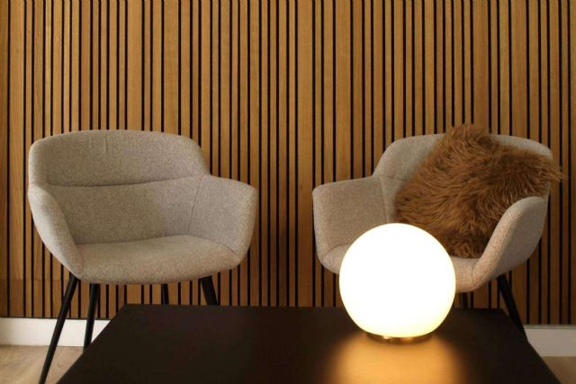 Además, si bien la madera es un aislante acústico debido a sus propiedades fonoabsorbentes, este tipo de paneles cuenta con una técnica especial capaz de conseguir diferentes niveles de absorción acústica. Por otra parte, su versátil diseño permite adaptar los paneles a cualquier entorno y decoración.