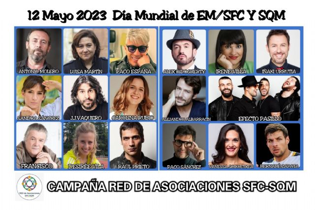 La RED de asociaciones SFC-SQM, por segundo año consecutivo, ha pedido apoyo a profesionales de la cultura, el deporte y el periodismo con motivo del 12 de mayo, en que se celebra el día mundial de la Encefalomielitis Miálgica / Síndrome de Fatiga Crónicay el de la Sensibilidad Química Múltiple. Por eso en esa fecha colgarán un video en sus redes sociales apoyando a los pacientes que sufren estas complejas y graves enfermedades, a los médicos que los tratan, a los investigadores y a sus cuidadores