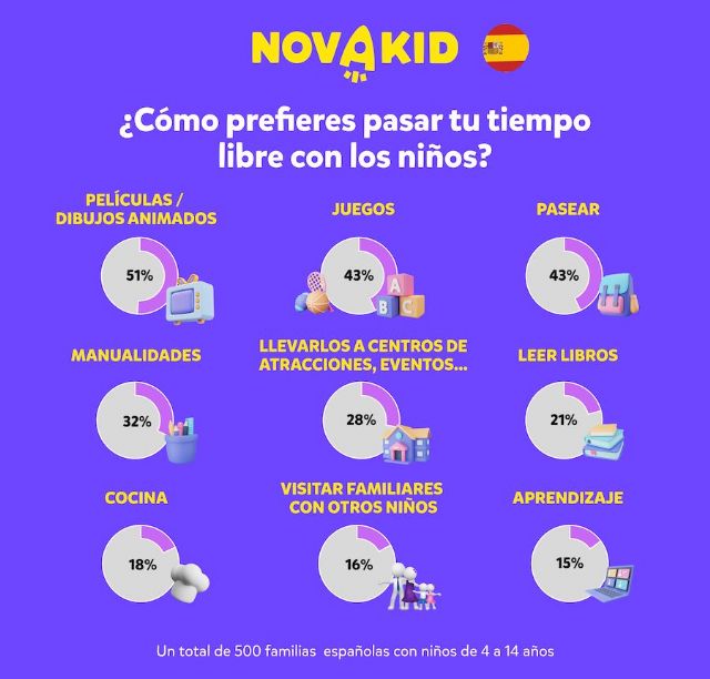 Con motivo del Día Internacional de la Familia, que se celebra cada 15 de mayo para concienciar sobre la importancia de la familia como unidad básica de la sociedad y para fomentar su bienestar y desarrollo, Novakid, plataforma de ESL online para niños número uno en Europa, ha realizado una encuesta a 3.500 familias con hijos de entre 4 y 12 años de diferentes niveles de educación, ingresos y ocupación sobre sus hábitos familiares