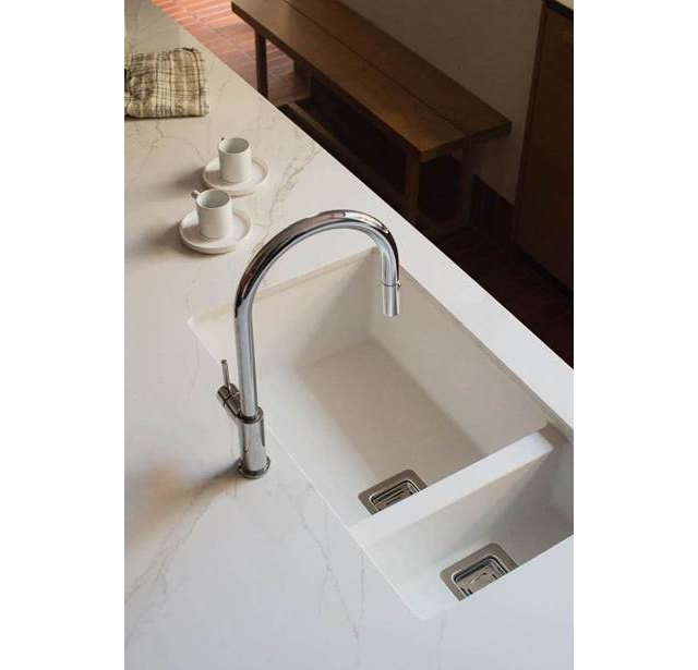 Una de las características destacadas del fregadero Zie es su versatilidad. Está disponible en cuatro acabados (snow, pumice, ash y basalt) – que van desde el blanco hasta el negro pasando por colores neutros. Además, cuenta con una amplia gama de modelos disponibles, ofrece diferentes composiciones para adaptarse a cualquier estilo y preferencia. Puedes escoger entre un seno y dos senos, de diferentes medidas e incluso añadir una zona de escurridor.. Estas opciones harán que Zie encaje en cualquier cocina desde un aspecto clásico y atemporal o una estética contemporánea y vanguardista, el fregadero Zie te brinda la libertad de crear la cocina de tus sueños.