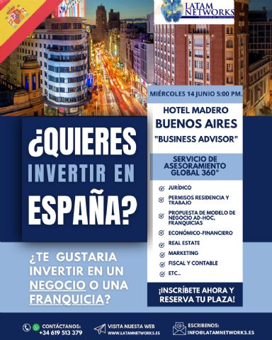 Latam Networks, consultora española especializada en la expansión de redes de franquicias entre España y Latam, ha convocado una nueva misión comercial en Buenos Aires. Su objetivo es entrar en contacto con emprendedores, empresarios e inversionistas interesadas en invertir y vivir en España.
