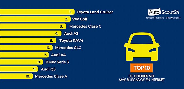 ¿Cuáles son los vehículos usados que generan un mayor interés en Internet en España? Contra todo pronóstico y según el historial de búsquedas, el Toyota Land Cruiser ha desbancado del primer lugar a todo un “clásico” como es el VW Golf, según datos de enero a mayo de 2023 de AutoScout24, el portal especialista en vehículo de segunda mano de Sumauto, publicados en la antesala del Salón de VO de Madrid, que arranca dentro de una semana.