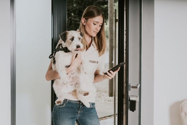 Abre la puerta a personas autorizadas. Con este tipo de cerraduras, los usuarios pueden dar acceso al interior de la vivienda a quien quieran, como puede ser un familiar que se encargue de regar las plantas o dar de comer al gato, el repartidor que quiere entregar un paquete urgente o la persona encargada de la limpieza. Para esta acción existe la posibilidad de abrir directamente la puerta de manera remota, mientras que con Nuki Home Set Pro, con el accesorio Keypad posibilita dar un código a cada una de estas personas para que puedan acceder al hogar, permitiendo el cambio o la cancelación del mismo en cualquier momento.