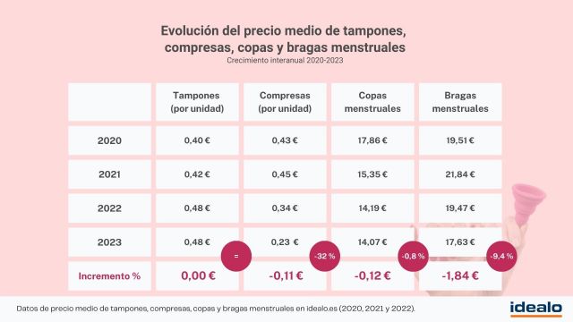 En este sentido, Natalia Garavano, responsable de comunicación de idealo, comentó: "Además de su comodidad y adaptabilidad, las copas y bragas menstruales suponen un importante ahorro a largo plazo, por lo que cada vez son más quienes optan por esta alternativa". Además, añade que: "Los nuevos productos de gestión menstrual suponen una opción más sostenible que permiten un gran ahorro al prescindir de productos desechables como compresas o tampones".