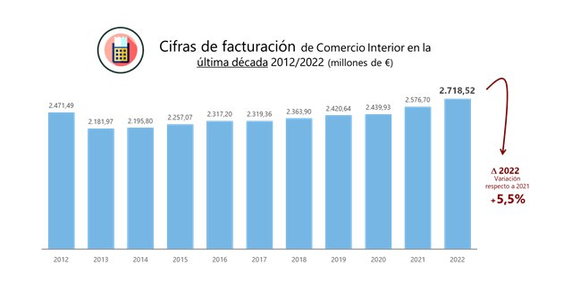 La facturación volvió a crecer más de un 5% (5,5%) y se situó en los 2.718,52 millones de euros. Se ha producido un incremento del 15% en los últimos cinco años y un 11% con respecto a antes de la pandemia.