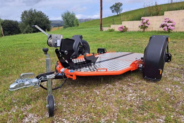 Un remolque para motos abatible y plegable tan cómodo que lo puede usar una sola persona