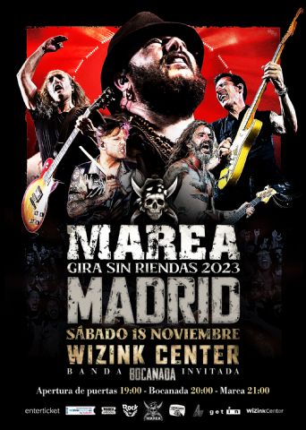 Marea, la ya legendaria banda siempre integrada por Kutxi Romero, Kolibrí Díaz, César Ramallo, Eduardo Beaumont "˜El Piñas"™ y Alén Ayerdi, estarán actuando el próximo 18 de noviembre en el WiZink Center de Madrid. La noticia salta a la luz una vez rebasado el ecuador de su gira "˜Sin riendas 2023"™, fuera de toda duda la gira rockera por excelencia del año en curso: no en vano en buen número de las ciudades visitadas se ha multiplicado, e incluso triplicado, el número de tickets vendidos respecto a anteriores ocasiones.