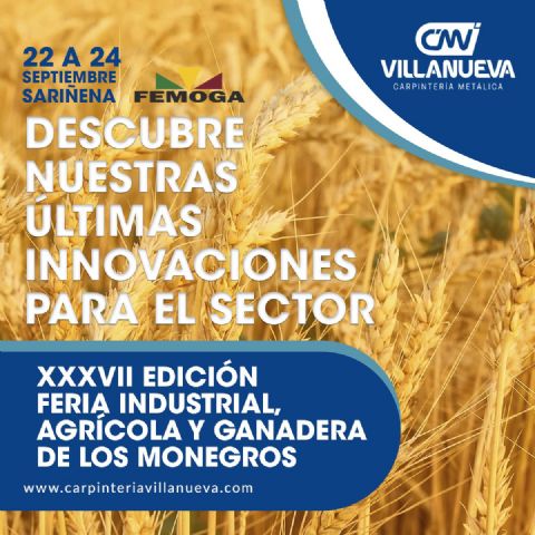 Con el objetivo de presentar las innovaciones más recientes en el sector, Carpintería Metálica Villanueva estará presente como expositor en la XXXVII Edición de FEMOGA (Feria Industrial, Agrícola Y Ganadera De Los Monegros). La feria, que es una referencia para los profesionales del sector, se celebrará en Avda. de Fraga 42, de 11:00 a 14:00 y de 16:30 a 21:00 horas, del 22 al 24 de septiembre. La empresa tendrá su stand en la zona B.