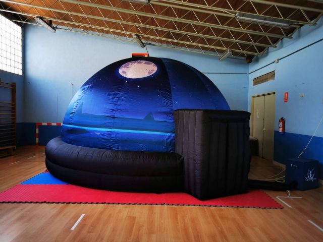 Este planetario portátil permite a estudiantes de todas las edades explorar el cosmos de una manera envolvente y educativa. Gracias a su diseño compacto y fácil de transportar, puede instalarse en cualquier centro educativo de la península, pudiendo disfrutar toda la comunidad educativa de experiencias astronómicas de calidad sin la necesidad de salir del recinto escolar. Ahorrando así costes de transporte. El planetario puede albergar en su interior a unos 30 alumnos por sesión.