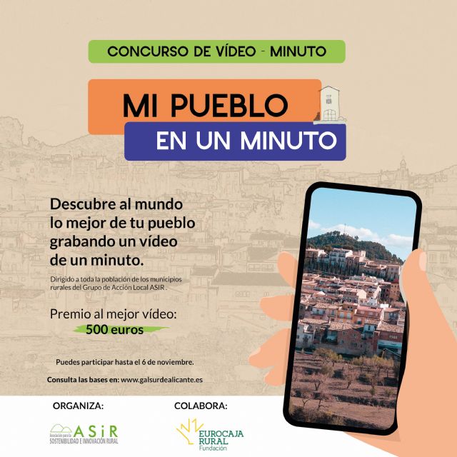 El Grupo de Acción Local ASIR, en colaboración con la Fundación Eurocaja Rural, ha puesto en marcha el concurso 'Mi pueblo en un minuto' para mostrar el potencial de sus 13 territorios y los encantos que atesoran estas zonas rurales del sur de Alicante.