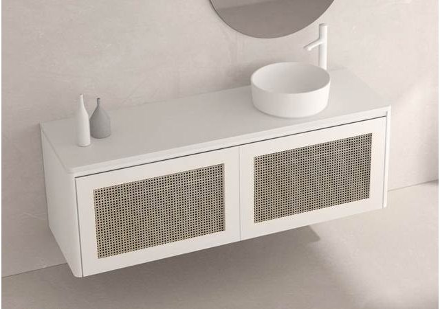 Foto: mueble de baño BALI de NUOVVO® color blanco mate y ratán natural.