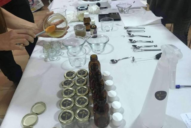 Durante la formación, cada alumno fabrica sus propios productos, como bálsamo labial de miel, acondicionador corporal sólido, ungüento reparador con propóleo y caléndula, champú sólido con extracto de polen, también gel de baño con avena y miel, crema con cera de abeja y mascarilla facial con miel.