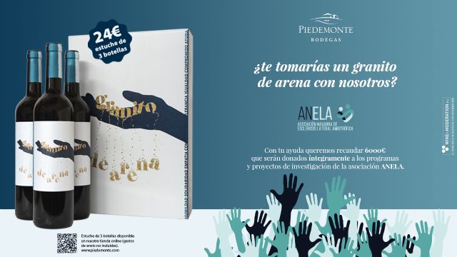 En esta ocasión, Bodegas Piedemonte, situada en Olite inicia una nueva colaboración solidaria con ANELA Navarra, una asociación de carácter privado y permanente, de estilo democrático y sin ánimo de lucro, que dedica su trabajo y esfuerzo a la búsqueda de la mejora en la calidad de vida de las personas afectadas por ELA y también sus familiares. Esta asociación se ha convertido en un importante punto de encuentro de todas estas personas, dándoles todo el apoyo y contención que necesitan. Además de sensibilizar, concienciar y recaudar fondos que van destinados a los programas de ANELA y a la investigación para encontrar tratamientos curativos de la ELA, actualmente inexistentes.