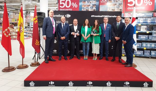 Carrefour ha entregado el premio a la "Mejor Pyme de Murcia" a Airemar Los Tarquinos y el galardón a la "Transición Alimentaria" ha recaído en El Barranquillo SL. El acto ha estado presidido por Sara Rubira Martínez, consejerade Agua, Agricultura, Ganadería y Pesca contado y Alfonso Vallejo Rodríguez, director de Carrefour Zaraiche.
