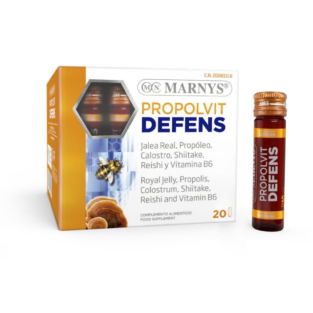 Propolvit Defens es el complemento alimenticio perfecto para las temperaturas frías y para hacer más llevaderos los cambios estacionales. Este shot contiene ingredientes únicos como Jalea Real, Propóleo, Calostro, Reishi y Shiitake. Además, contiene vitamina B6 que, según la Autoridad Europea de Seguridad Alimentaria (EFSA), contribuye al normal funcionamiento del sistema inmune y del metabolismo, reduciendo el cansancio y fatiga.