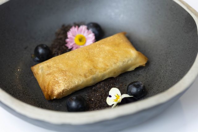 La tapa se sirve sobre una ceniza de puerro, y unas grosellas como fruto del bosque, que también le hacen un guiño al caminante.