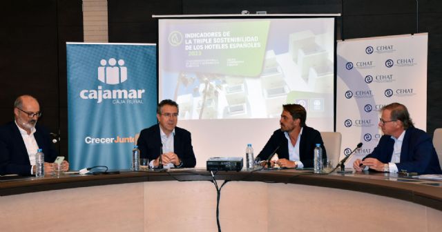 Grupo Cooperativo Cajamar y la Confederación Española de Hoteles y Alojamientos Turísticos (CEHAT) han presentado esta mañana en rueda de prensa el informe 'Indicadores de la Triple Sostenibilidad de los Hoteles Españoles 2023', elaborado conjuntamente durante los meses de julio y agosto. El objetivo de este estudio es crear un sistema de indicadores que monitoricen de forma global el avance en materia de sostenibilidad del sector hotelero en España, abordando los tres ejes de la sostenibilidad: medioambiental, económico y social.