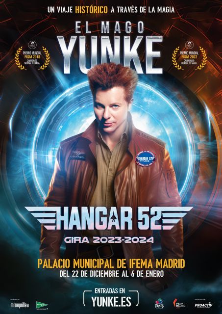 El Mago Yunke, Campeón Mundial de Magia, presenta la Gira 2023-2024 de Hangar 52, un espectáculo lleno de ilusión y emoción dirigido a toda la familia. Madrid es la primera ciudad anunciada para esta gira 2023-2024, que en Madrid permanecerá en el Palacio Municipal de IFEMA MADRID entre el 22 de diciembre y el 6 de enero de 2024. A la gira se sumarán nuevas sedes, que se desvelarán próximamente.