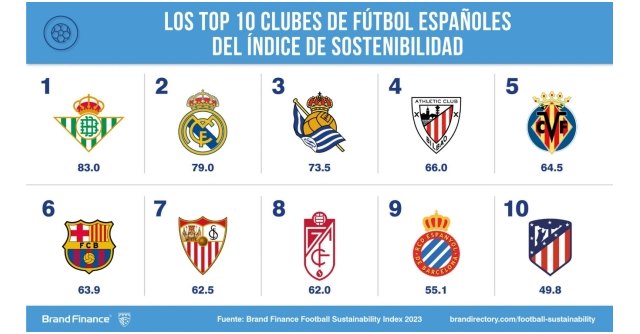 El club español Real Betis es el 2º en sostenibilidad percibida con una puntuación ESG global de 83/100. En 2020, el Real Betis lanzó su programa "Forever Green", una plataforma de sostenibilidad para empresas e instituciones que quieren utilizar el fútbol, el deporte más popular del mundo, para ayudar a salvar el planeta. “Siempre Verde" es una iniciativa del Real Betis para concienciar a la población sobre la realidad del cambio climático. Como plataforma abierta, las empresas implicadas pueden colaborar en proyectos para reducir las emisiones y crear una mayor conciencia social en torno a la crisis climática. Esto pretende convertirse en un modelo a seguir para los aficionados al fútbol y utiliza la audiencia masiva del fútbol para ayudar a impulsar un futuro más sostenible.