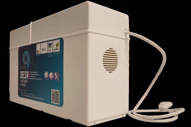 DESV Ventilador Ecologic es un sistema que permite la purificación del aire en espacios interiores, para ofrecer entornos más seguros, saludables y agradables al respirar. El sistema funciona por contacto del aire, lo cual permite atrapar el polvo en suspensión y eliminar virus y bacterias del aire. La máquina dispone de un ventilador que recoge el aire del ambiente para limpiarlo de partículas. Posteriormente, este se pulveriza, pasa por el fluido retenido en la cubeta que actua como filtro y una vez mezclado lo limpia y purifica con el producto Ambi-Control al 70 % de hidroalcohol. Al finalizar este proceso, se devuelve al ambiente un aire purificado, desodorizado, desinfectado y sin partículas.