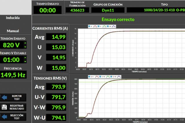 La integración completa del sistema con el ERP empresarial permite la herencia de características del equipo a ensayar y el almacenamiento posterior de los ensayos realizados. Todos los ensayos realizados a lo largo del proceso productivo de transformadores son controlados por este sistema, capturando y almacenando la información de ejecución y los resultados finales.