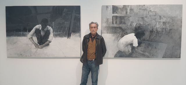 Precisamente, uno de los detalles que más llaman la atención de los 21 óleos de gran formato que, a su vez, componen los 3 trípticos de 'Siete', es que están elaborados solo en blanco y negro. Con esta técnica pictórica, el artista trata de invitar al visitante a introducirse en la realidad que observa y a reflexionar sobre ella, ya que "cada cuadro te hace pensar que podrías ser el protagonista del mismo", según indica Pedro Cano.