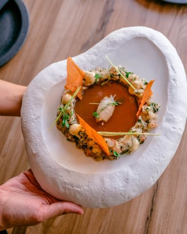 Para ello, se ha rodeado de un equipo joven y muy vital liderado por el chef Aniol Pararols, formado en el Celler de Can Roca. Él se encarga de transformar las materias primas en platos que ya son todo un éxito, como los huevos fritos de Pol y Aniol, con trufa y caviar; o las coliflores con bechamel, aceite de trufa, chips de ajo tostado y panceta. El carpaccio de aguacate con caviar, salsa mole y helado de guacamole también ha conquistado ya a muchos de sus comensales, como el ceviche de gambas con carabineros, helado de kikos, boniato y leche de tigre; o el rape a la plancha con salsa beurre blanca, olivada y verduras.