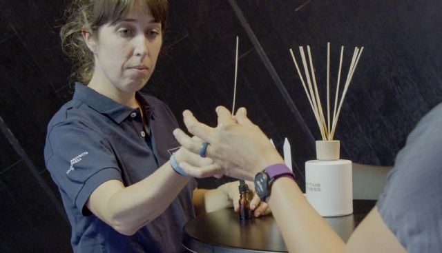 Gracias al trabajo de nuestros equipos con nuestro proveedor Cuarto Sentido, creamos una fragancia con una doble vertiente: por un lado, tiene un componente vigorizante que pretende aumentar la motivación, la intensidad y la concentración durante el entrenamiento. Por otro lado, el efecto relajante de la otra parte de sus cuidados ingredientes es de gran utilidad para ayudar a nuestros socios a recuperar la calma después del entrenamiento, sin perder ese efecto positivo sobre el cerebro que provoca el ejercicio físico”, matiza.