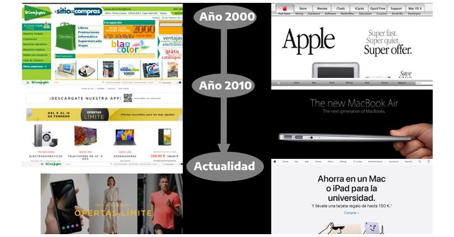 Evolución de las páginas web de El Corte Inglés y Apple desde el año 2000 a la actualidad