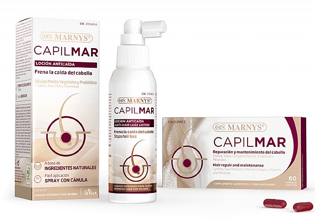 El laboratorio MARNYS - Martínez-Nieto S.A. ha lanzado Capilmar cápsulas y loción anticaída, dirigidos a frenar la caída del cabello en hombres y mujeres, ya sea intensa o estacional. La combinación de ambos formatos permite reparar el cabello desde la raíz y revitalizarlo, devolviéndole su firmeza y brillo.