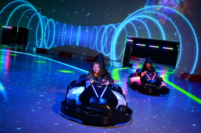 Diseñado por The Ents Inc, Chaos Karts es una innovadora experiencia donde los jugadores "queman caucho" en un mundo digitalmente proyectado, compitiendo en torno a un número potencialmente infinito de pistas. Sus vehículos interactúan con el circuito virtual y con cualquier desafío que los jugadores rivales puedan 'lanzarles'. Los proyectores Panasonic se emplean para reproducir imágenes de los circuitos, así como potenciadores y armas virtuales que pueden ser usados por cada usuario, lo que posibilita una experiencia de videojuego de acción en directo envolvente y cautivadora.