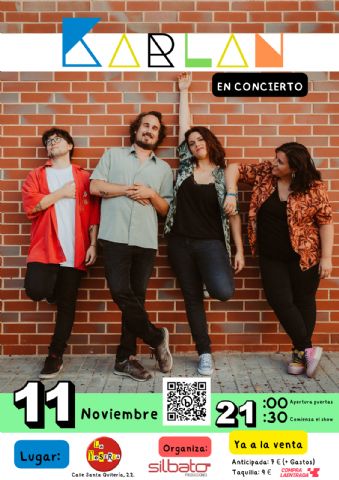 KARLAN cuenta con canciones de pop indie pegadizas, con letras reivindicativas y reflexivas que nos permiten cantar a pleno pulmón sobre temas de hoy en día como son las relaciones personales, la rutina, el conformismo social, la necesidad de ser fiel a uno mismo, los amores tóxicos o el valor del perdón o la autorrealización. La banda, formada en 2019 está compuesta por Lola García, cantante y compositora, seguida por Mar Rodríguez, batería, coros y letras, Arturo Ortíz, bajo y Jorge Asmarts guitarra. Juntos conforman un proyecto que cuenta con la ilusión de poder hacerse un hueco en la escena del pop indie en España y que muy pronto saldrá de gira también por salas de todo el panorama nacional.