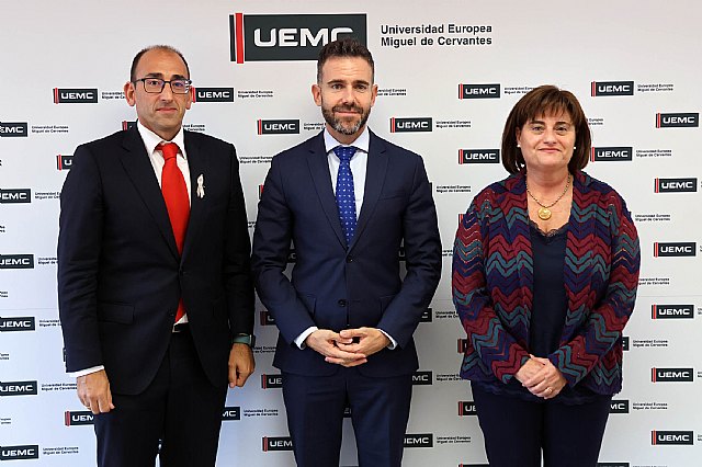 El rector de la Universidad Europea Miguel de Cervantes (UEMC) de Valladolid, David García López, el director territorial de Banco Santander en Castilla y León, Javier Martín Clavo, y la directora de la Fundación UCEIF, Begoña Torre, han firmado esta mañana un acuerdo de colaboración para llevar el programa ‘Finanzas para Mortales edición Senior’ impartido por profesionales voluntarios de la entidad, a más de 200 estudiantes del Programa Interuniversitario de la Experiencia que desarrolla la UEMC en sus sedes de Medina del Campo y Medina de Rioseco.