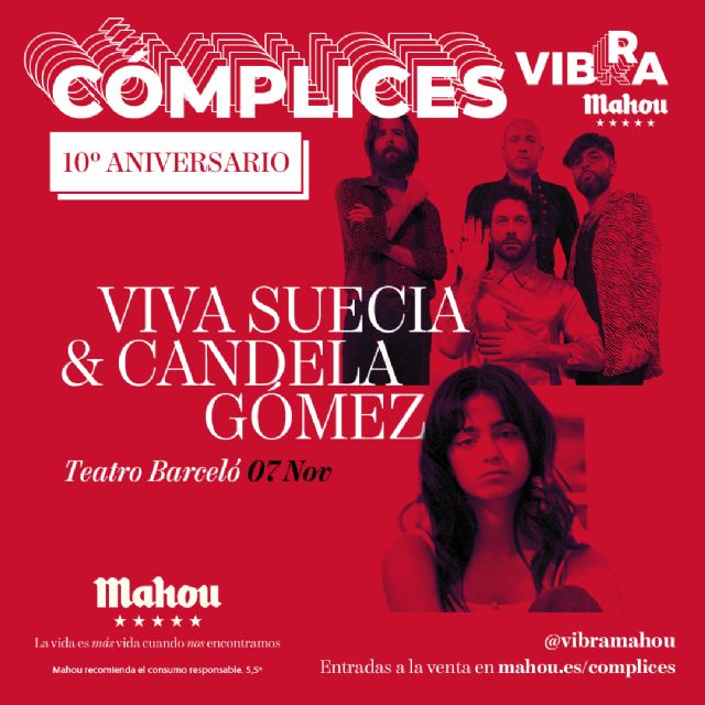 El segundo concierto del ciclo fusionará el indie más enérgico de Viva Suecia, que repite participación en Cómplices Vibra Mahou, con el pop más potente de Candela Gómez. El grupo ha sido capaz de crear himnos atemporales basados en la energía de sus guitarras y las letras más intensas. Como han conseguido hacer en los festivales más multitudinarios del verano, la banda volverá a establecer esa conexión mágica con el público, algo que comparte con su compañera sobre el escenario. Candela Gómez enamorará a los asistentes con la interpretación de temas tan virales como su ‘no es que no te quiera’. Un pop noventero que casará a la perfección con el estilo de Viva Suecia y que creará una mezcla magnética.