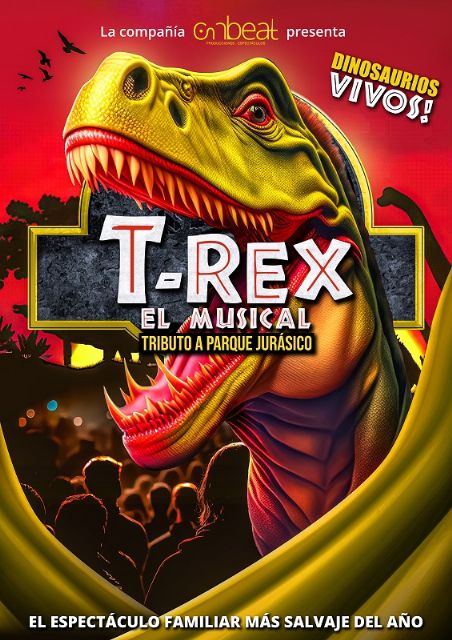 La Compañía Onbeat presenta T-Rex el musical. Una visión fascinante sobre los dinosaurios inspirándose en el film pero con canciones propias compuestas por Naím Thomas (OT) cantadas en directo y coreografías que acompañan esta aventura para toda la familia.