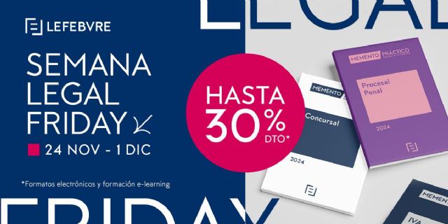 Lefebvre, proveedor de software y contenido jurídico líder en España, trae por noveno año consecutivo cantidades de descuentos con los que celebrar el Legal Friday. Lefebvre, empresa pionera en llevar al sector legal el Black Friday, pone a disposición de todos sus clientes descuentos con los que poder adquirir diferentes productos en la tienda online.