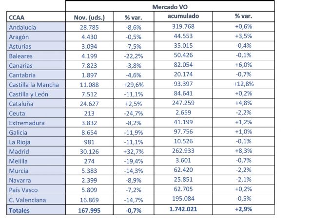 En el otro lado de la balanza, los usados de entre 10 y 15 años continúan a la baja hasta noviembre. En lo que llevamos de ejercicio, las operaciones con estos modelos suman un total de 316.437 unidades, lo que supone un descenso del 16,7% con respecto al mismo periodo del año anterior.