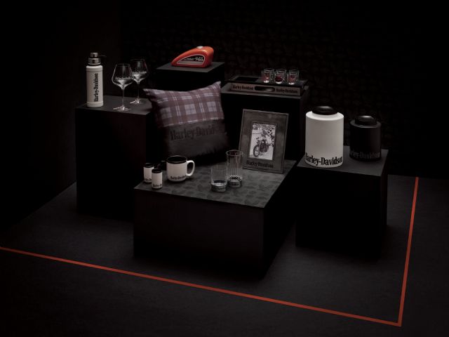 La selección Harley-Davidson de complementos para el hogar incluye tazas de viaje para acompañar a tus seres queridos en sus aventuras, así como adornos navideños que aportarán un brillo único a la decoración festiva del hogar. Además, la selección también incluye artículos de bar como vasos con diversas formas y diseños.