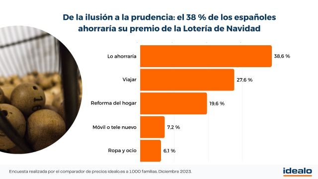 Además, esta situación causa que las familias traten de controlar sus gastos. Partiendo de esto, el 34,5 % de los encuestados afirma estar reduciendo su desembolso en viajes. Por este motivo, si lograsen ser los afortunados ganadores de un premio en la Lotería, el 27,7 % de los españoles utilizaría ese dinero para viajar. Por otra parte, el 19,6 % invertiría esa cantidad en realizar algún tipo de reforma en el hogar.