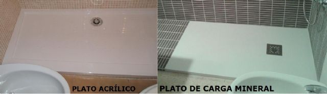 En cuanto a la forma, los platos acrílicos suelen tener un reborde exterior de aproximadamente 7 cm de alto, mientras que los de carga mineral son de menor espesor (hay de 3 cm, de 2,8 cm, etc.), y a la hora de ejecutar el cambio bañera por ducha, este último, por su composición se puede recortar y adaptar a la forma necesaria, cosa que con el plato acrílico no sería posible.