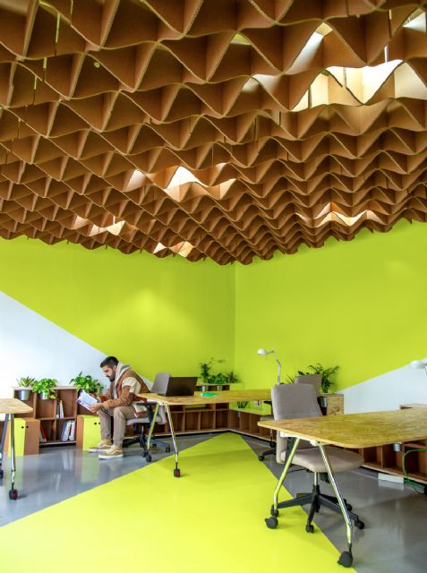 El laboratorio de innovación y ecodiseño Cartonlab, con sede en la Región de Murcia, se ha especializado en la ideación y montaje de techos acústicos fonoabsorbentes construidos con materiales sostenibles certificados.