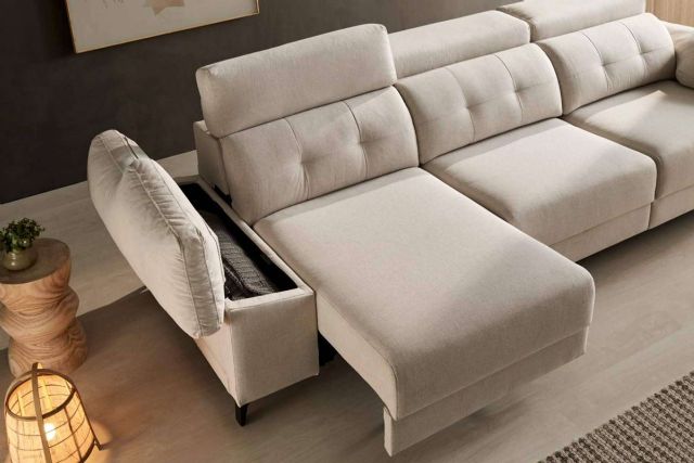 Los sofás chaiselongue con arcón cuentan con un espacio de almacenamiento oculto debajo del chaiselongue. Esto es una gran ventaja, ya que permite guardar mantas, cojines o cualquier otro objeto que no se use habitualmente. Son ideales para optimizar al máximo el espacio del salón.