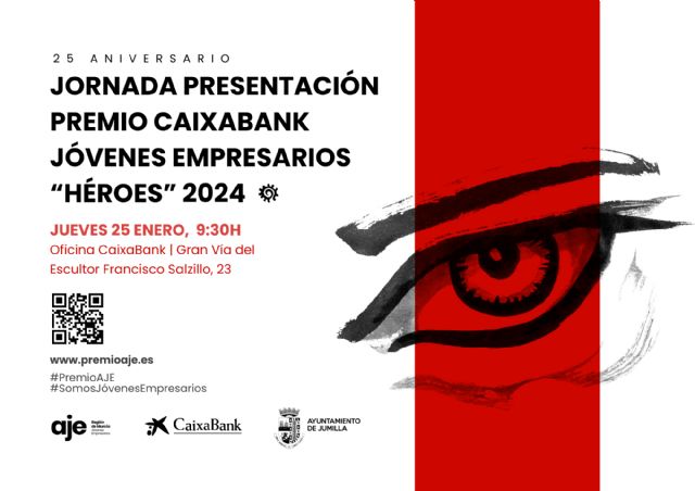 AJE Región de Murcia, junto a CaixaBank y el Ayuntamiento de Jumilla, ha anunciado hoy la celebración del 25 aniversario del Premio CaixaBank Jóvenes Empresarios "Héroes", un reconocimiento emblemático que ha marcado la excelencia empresarial en la Región desde su inicio en 1999. El galardón ha destacado a jóvenes emprendedores por su dedicación, esfuerzo y éxito en proyectos innovadores.
