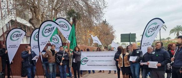 Este lunes, convocados por CSIF, se concentraron más de un centenar de funcionarios interinos y de carrera, para protestar ante la Función Pública Regional y el SEF, contra el acuerdo de Oferta de Empleo Público (OEP) de la CARM para el personal de Administración y Servicios (PAS)