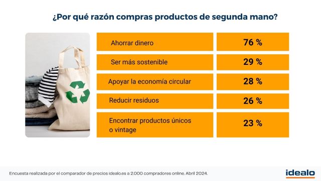 Este tipo de adquisiciones se ha generalizado y, según los datos de la investigación, el 67 % de los encuestados compra regularmente artículos usados. Además del ahorro de costes, el 29 % de los españoles afirma estar motivado por cuestiones medioambientales, mientras que el 28 % indica que busca este tipo de productos para apoyar a la economía circular. Asimismo, un 26 % señala la reducción de residuos como su principal motivación, al tiempo que un 23 % busca artículos usados para encontrar productos únicos y vintage.
