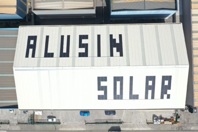 Bikote Solar, especializada en instalaciones de placas solares para empresas, ha realizado una instalación muy singular para Alusín Solar en su planta de fabricación de Avilés, Asturias. Ha instalado 114 paneles fotovoltaicos en la cubierta, formando el nombre de la empresa, Alusín Solar, que se puede leer claramente desde vista aérea.