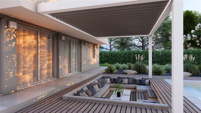 Crea zonas de estar multifuncionales: Divide tu espacio exterior en áreas dedicadas para diferentes actividades, como comer, descansar y de entretenimiento. Las pérgolas bioclimáticas son siempre una excelente opción para crear un refugio de sombra acogedor y rodeado de naturaleza.