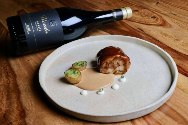 Cerraban su participación gastronómica en el menú José Carlos y Sergio con una 'Paletilla de chivo lechal de raza malagueña pura con salsa pastoril y patatitas rustidas al ajillo'. Para este plato la sutilidad de la uva Mencía sentaba armonía en Ucedo 2021, el tinto más destacado de Bodegas Gancedo.
